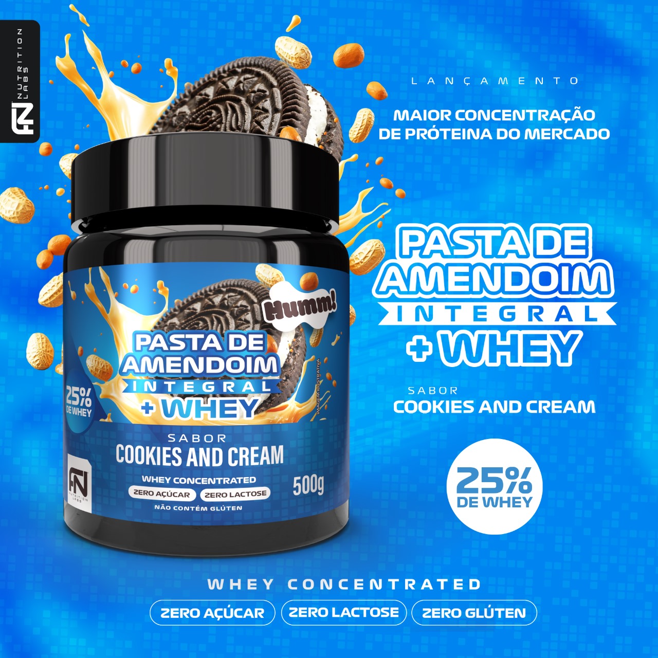 A combinação perfeita entre o clássico sabor cookies and cream e a nutrição poderosa da pasta de amendoim com 25% de whey protein! 🍪💪