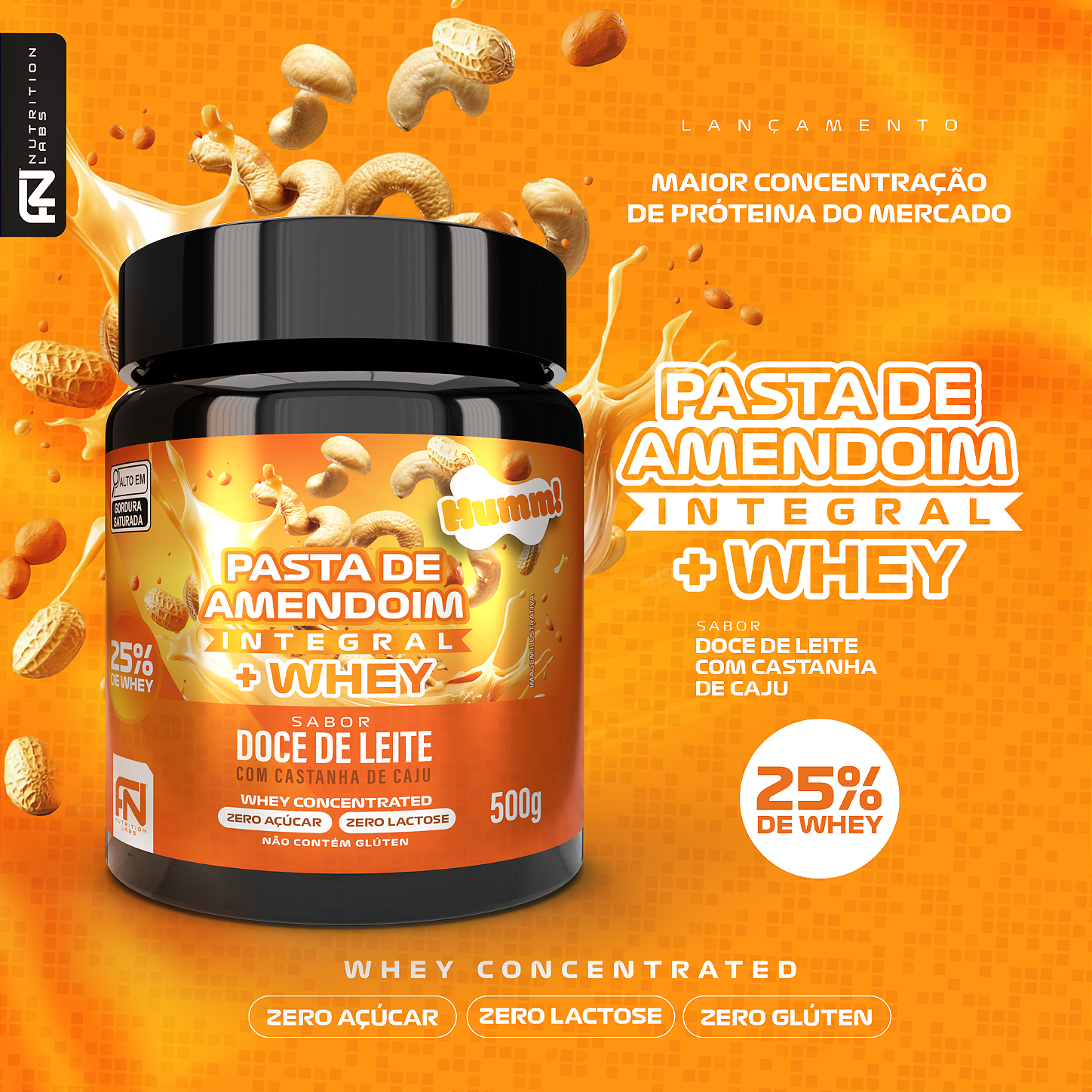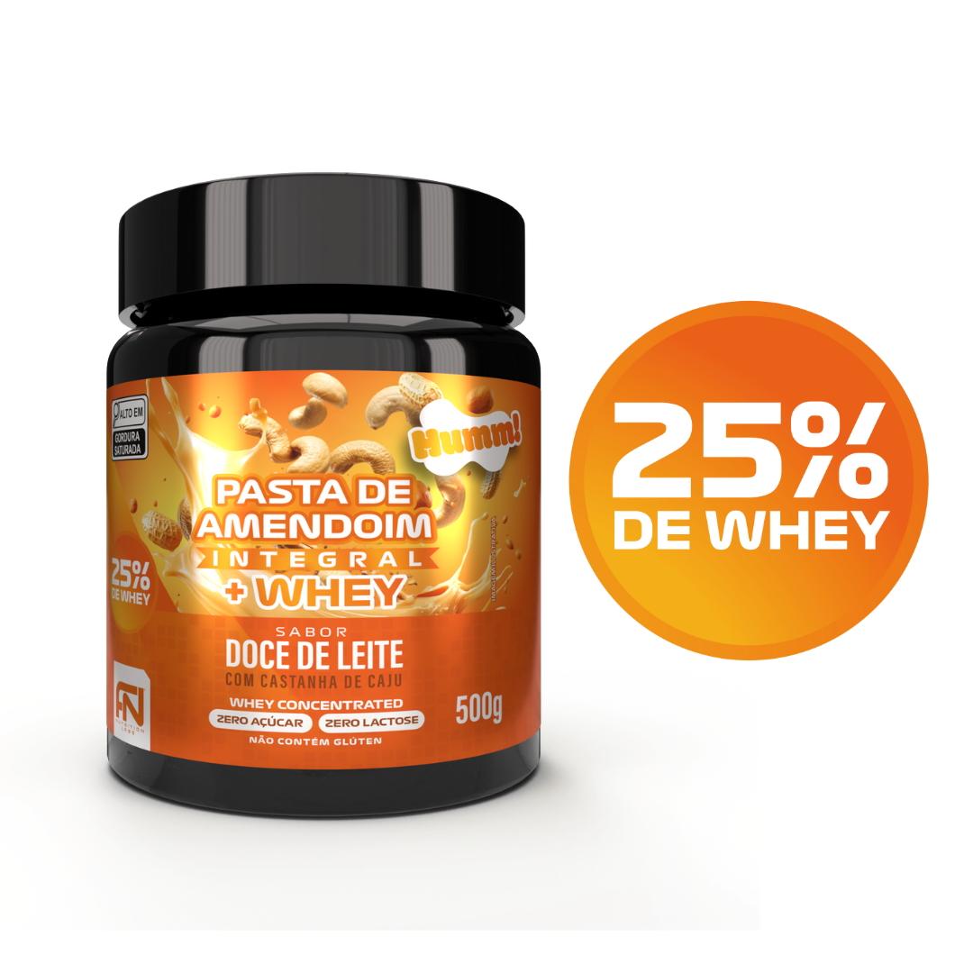 A Pasta de Amendoim 25% Whey Doce de Leite combina o sabor marcante e cremoso do doce de leite zero açúcar com a potência do whey protein, garantindo energia, nutrição e alto desempenho em cada colherada.